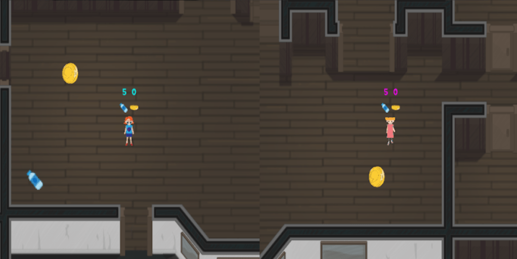 Initially during paper prototype the game was more of a board game-style multiplayer, and while this received positive feedback during paper testing, we evaluated that when taken to digital it was lacking in gameplay. Through this it evolved greatly into a split screen local PvP multiplayer where players competed to find enough loose change to purchase sanitary products for themselves. The intention was to provide an entertaining experience that offered elements of satire on the cost of sanitary products. Whilst the scope of this project did not allow for full expansion into this take, further iterations were planned and discussed as part of the assessment.